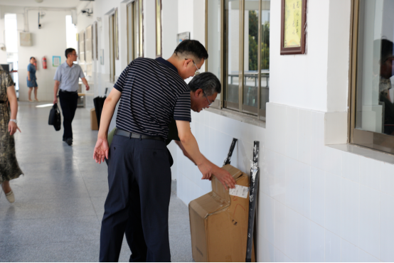 胡勇同志首先进入教学楼,对教学设备及服务设施进行细致核查。饮水机运行状态、教室白板维护、课桌椅更新、教室采光、教师办公条件等等,所到之处,关切询问、殷殷叮嘱。对于学校从细节处服务学生的做法给予肯定。