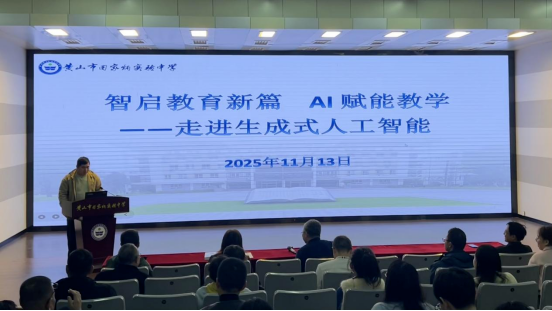 为深化“导-师-制+AI”赋能教学教研的实践路径,推动AI技术与课堂教学从“浅层应用”迈向“深度融合”,11月13日下午,黄山市田家炳实验中学“人工智能赋能教师专业成长”主题研讨培训会在报告厅举行。校领导班子成员与全体教职员工齐聚一堂,共探AI时代教学转型新方向,凝聚“技术赋能育人”的共识。