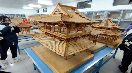 步入建筑工程学院建筑馆,错落有致的徽派古建模型与现代建筑设计作品引人驻足。讲解中融入徽文化传承与绿色建筑发展理念,让同学们深刻体会到建筑不仅是凝固的艺术,更是承载历史、服务民生、传递文化的重要载体。大家在观摩与提问中,触摸匠心传承,激发了对中华优秀传统文化的认同与责任感。