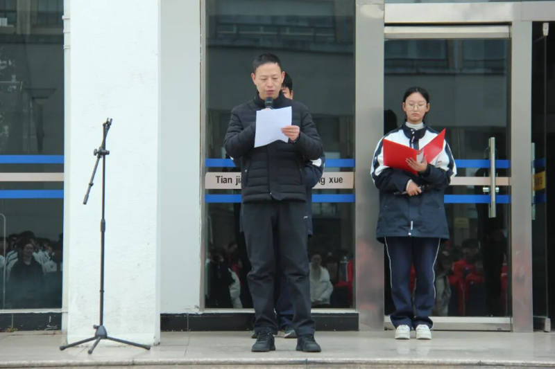 师者寄言,春风化雨。教师代表余绵康老师以温润而坚定的语调,为全体学子送上崭新期许。他勉励同学们在新学期要“追风赶月莫停留”,老师们将继续做大家最坚实的后盾,携手共赴“平芜尽处”的春山。余老师的发言,既是对学子的深情告白,亦是对教育初心的庄重承诺。