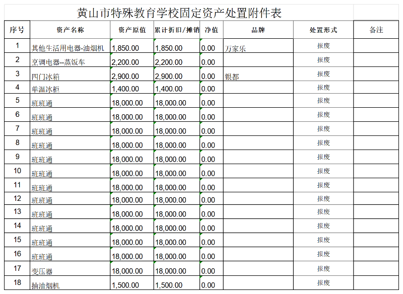 黄山市特殊教育学校关于待报废固定资产处置的公告
