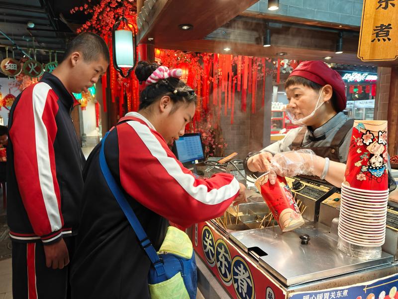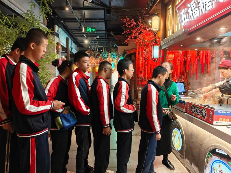 图书馆的静谧阅读体验结束后,首席导师们带领学生前往徽菜博物馆,开启下一场实践之旅。相较于图书馆的安静氛围,充满烟火气的博物馆小吃区,为学生们提供了学习自主点餐的实践机会。