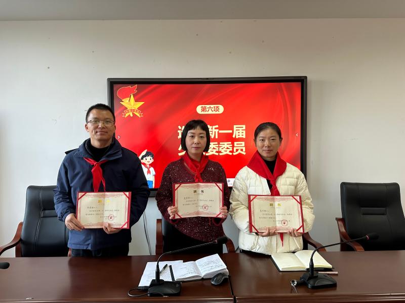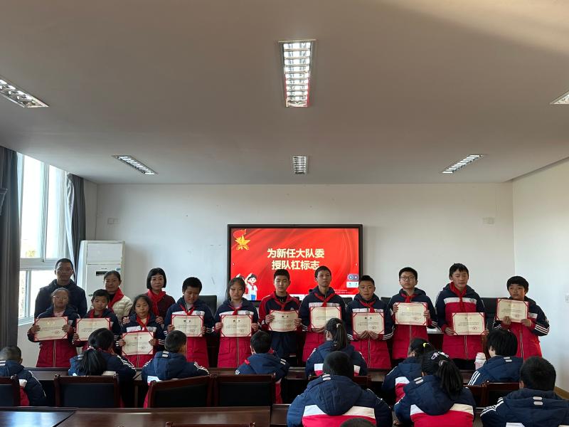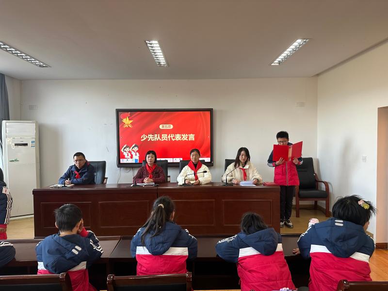 随后,大会进入选举环节。少先队员代表们秉持公平、民主原则,以举手表决的方式,选举产生了新一届大队委与少工委委员。现场,校领导为新任大队委颁发聘书、授予队杠标志——崭新的队杠佩戴在左臂,既是荣誉加持,更是责任重托;为少工委委员颁发的聘书,承载着对少先队工作持续深化的殷切期待。这一刻,学校少先队组织正式注入新鲜血液,焕发出新的生机。少先队员代表李若璞走上讲台发言,用真挚的话语分享自己在少先队中的成长故事,更表达了对少先队事业的美好向往,稚嫩的嗓音中透着无比的坚定。