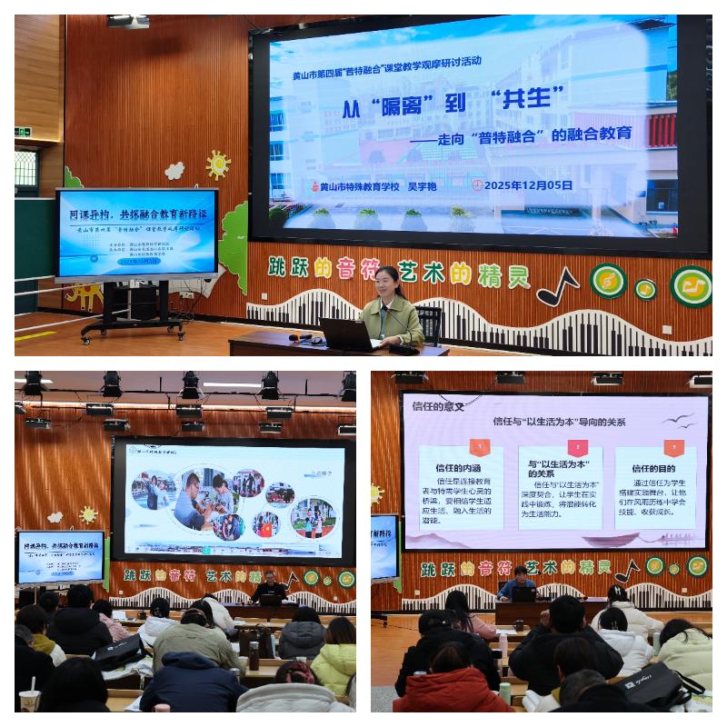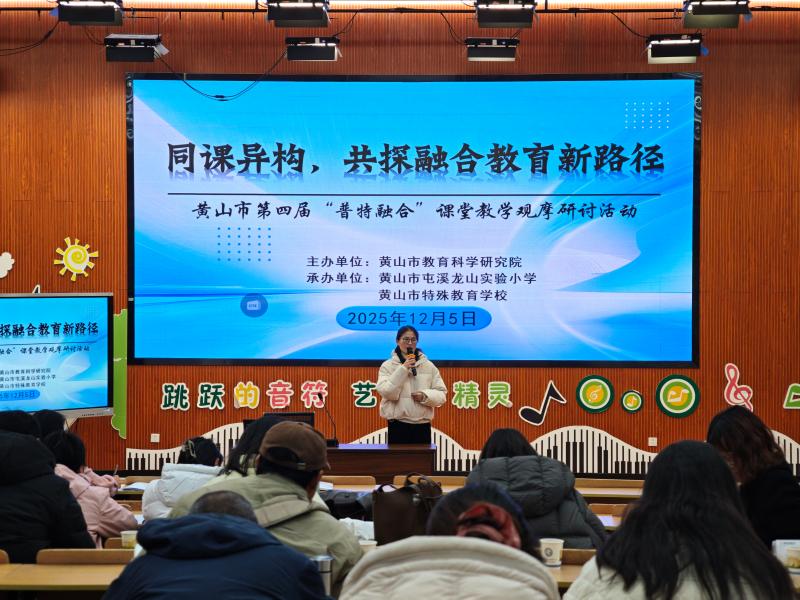 12月5日,黄山市第四届“普特融合”教学观摩研讨活动如期开展,三区四县普校、特校教育工作者齐聚黄山市屯溪龙山实验小学多功能厅,以课堂实践与专题分享为载体,共探融合教育发展新路径。