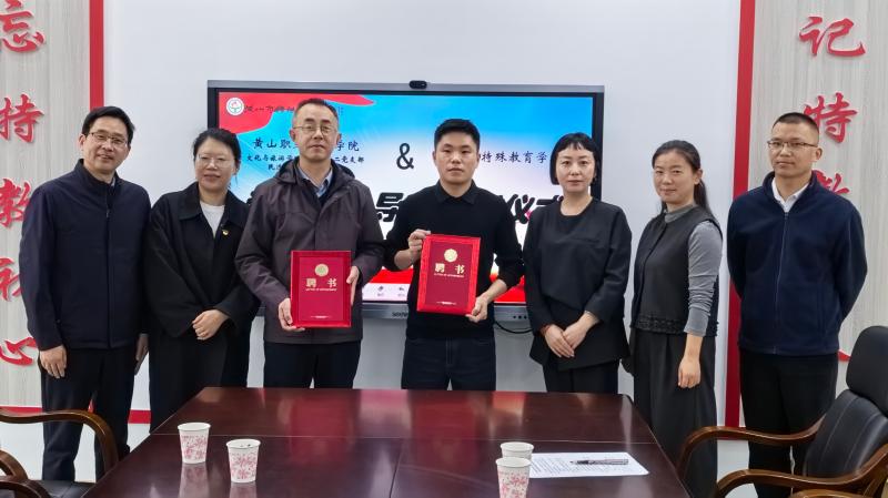 仪式上,黄山职业技术学院文化与旅游学院一行向黄山市特殊教育学校捐赠爱心物资,用实际行动传递温暖与关怀,黄山市特殊教育学校师生代表向来宾赠送精心准备的纪念品,彰显双向奔赴的真挚情谊。现场还举行爱“星”导师聘任仪式,黄山市特殊教育学校正式聘任黄山职业技术学院王波、刘书洋两位老师为社会爱“星”导师,为今后帮扶指导奠定坚实基础。仪式结束后,双方合影留念,定格院校合作暖心瞬间。