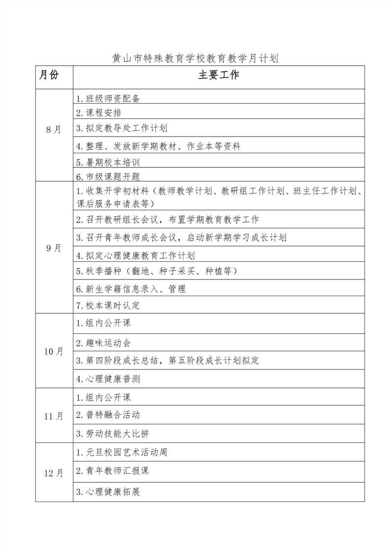 黄山市特殊教育学校2025年秋季教育教学月计划
