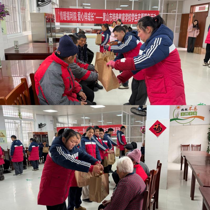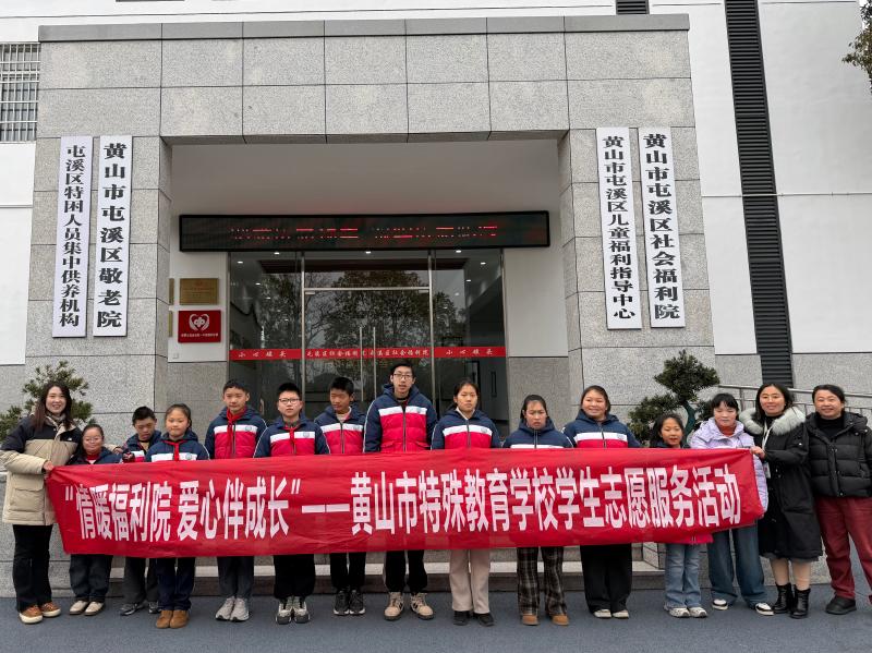 2026年1月21日,黄山市特殊教育学校优秀毕业生、现就读于安徽省特殊教育中专学校的汪程同学,趁假期带领母校学弟学妹们回到屯溪区福利院,开展“情暖福利院,爱心伴成长”志愿服务活动。这场由“导-师-制+”培育出的优秀学子牵头的“回家之旅”,既为福利院老幼送去温暖,更彰显了学校“导-师-制+”的育人实效。