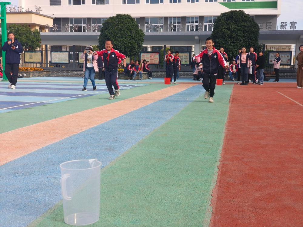 亲子项目更是让本次运动会充满了温情。低年级的 “鱼灯绕障碍”充满童趣,家长们牵着孩子的手,伴着鱼灯的光影绕着障碍前行,家长小心翼翼的步伐中饱含着对孩子真切的关爱;中年级的“搭石过河”考验着亲子间的配合与信任,家长“搭石”,孩子“踩石”,交替前行,眼神交流间传递着默契,欢声笑语中拉近了心与心的距离;高年级的“两人三足”则让亲子并肩前行,绑着的双腿象征着紧密相连的亲情,相同的步伐、相互的扶持,成为运动场上最动人的画面。