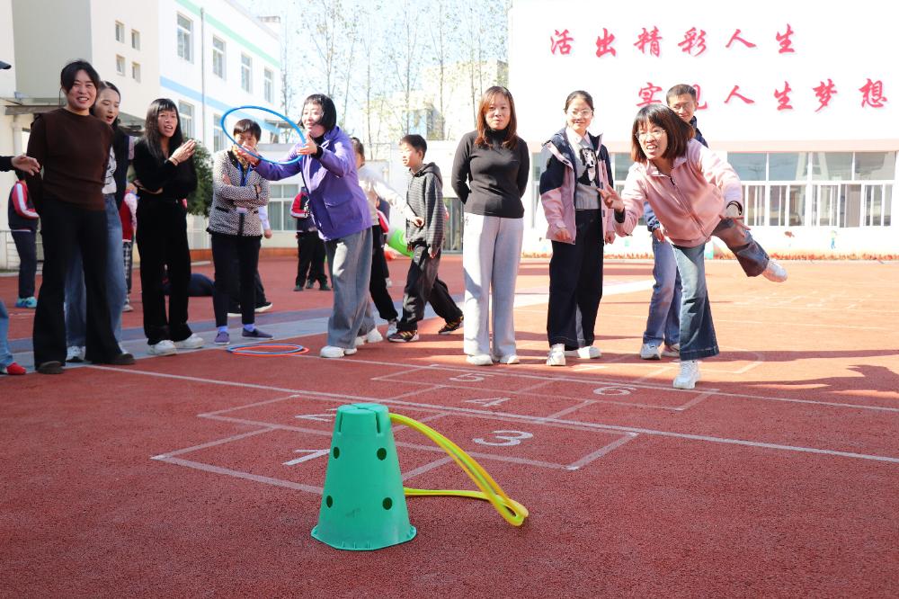除了学生与亲子项目,教师项目的开展为运动会增添了更多欢乐氛围。老师们暂时放下讲台的严谨,积极参与到趣味竞赛中,他们手持套圈,目光专注,瞄准目标,奋力一套,展现出别样的活力风采。学生们为老师的阵阵呐喊助威,传递着师生间最温馨的互动。