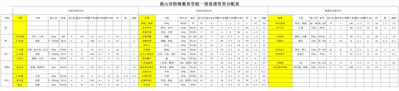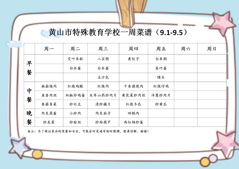 黄山市特殊教育学校一周菜谱(9.1-9.5)