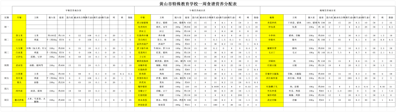 黄山市特殊教育学校一周菜谱(9.22-9.28)
