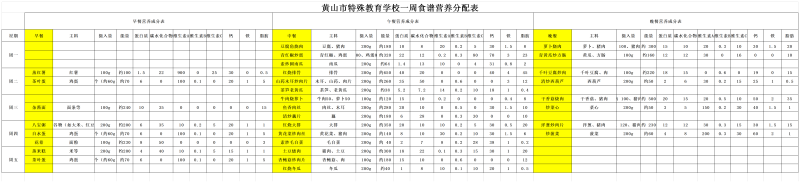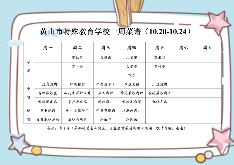 黄山市特殊教育学校一周菜谱(10.20-10.24)