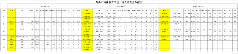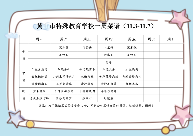 黄山市特殊教育学校一周菜谱(11.3-11.7)