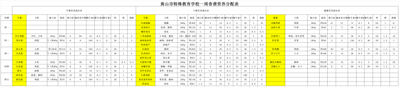 黄山市特殊教育学校一周菜谱(11.24-11.28)
