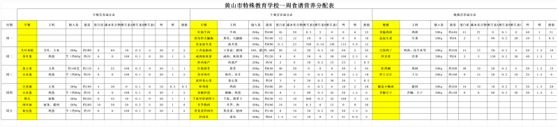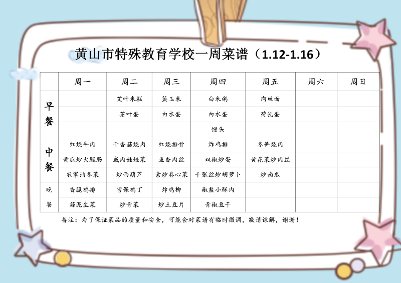 黄山市特殊教育学校一周菜谱(1.12-1.16)