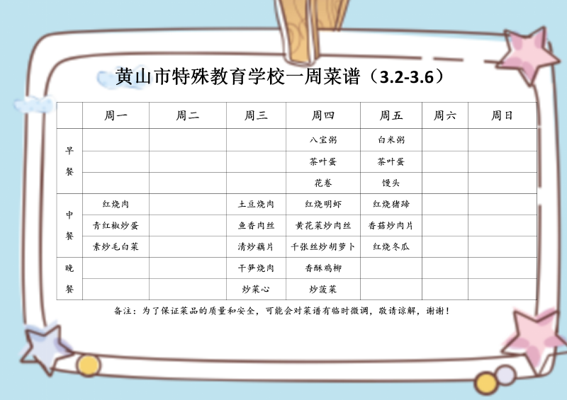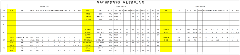 黄山市特殊教育学校一周菜谱(3.2-3.6)