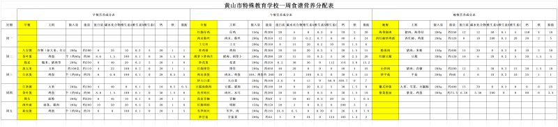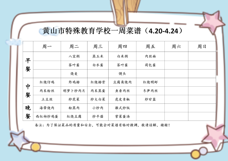 黄山市特殊教育学校一周菜谱(4.20-4.24)