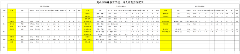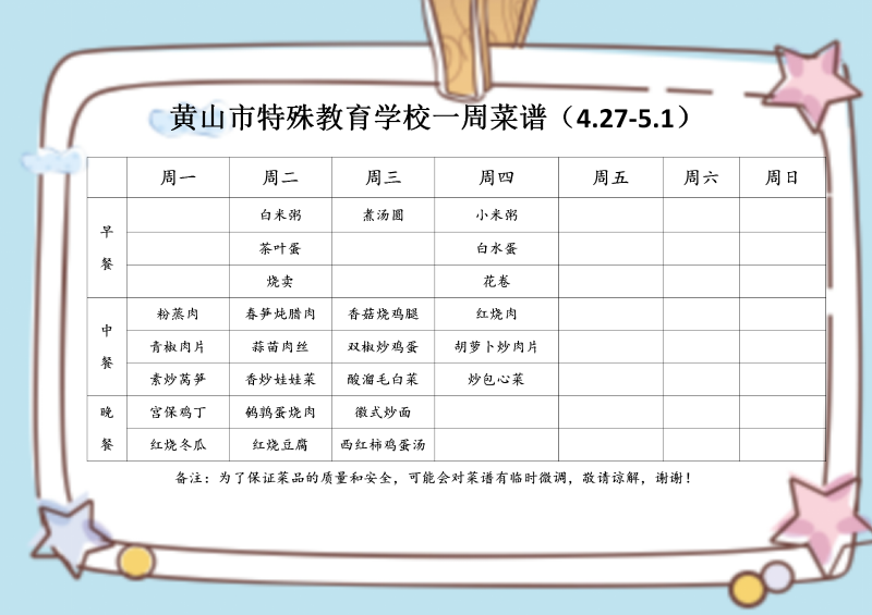 黄山市特殊教育学校一周菜谱(4.27-5.1)