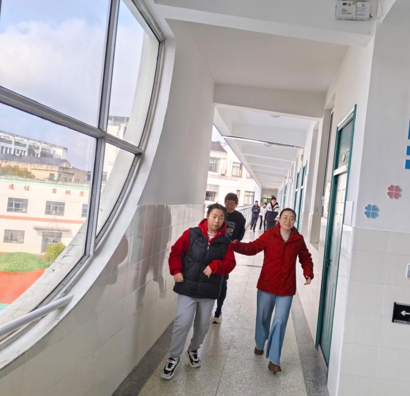 随着急促的紧急疏散警报突然响起,突发性疏散演练正式拉开帷幕。全校师生迅速进入应急状态,毫无迟疑。班主任第一时间快速组织学生弯腰低头,叮嘱学生紧跟队伍、不推挤、不喧哗,严格按照预定疏散路线,有序向操场安全区域撤离。针对部分行动不便、自理能力较弱的学生,班主任与帮扶导师全程贴身陪护,耐心引导、稳步搀扶,确保每一位学生都能跟上队伍。各楼层值守教师坚守关键点位,有序疏导人流,严防拥挤、踩踏等安全隐患,全程指挥下,疏散过程有条不紊。