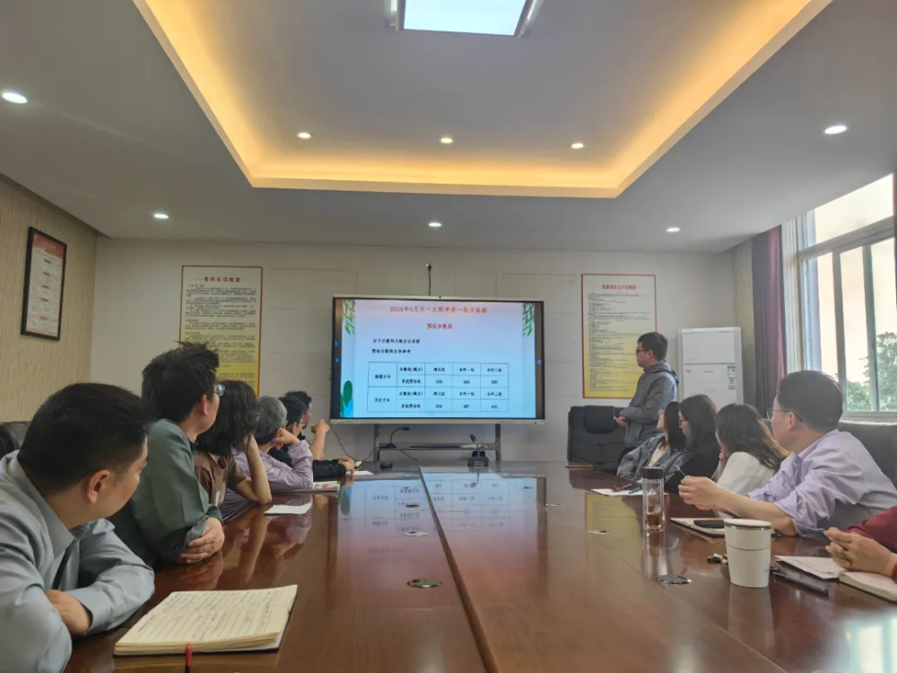 本次会议共有五项议程,一是由各班班主任对本班考试情况进行简要介绍和分析,二是由程嘉昱老师对本次“八校联考”整体情况进行对比和分析,三是由汪永锋组长分析即将到来的高二“选科走班”情况,四是由冯晓群副校长针对本次考试提出建议,五是由洪新华校长总结发言。