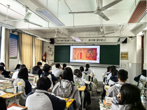 语文组程瑜、孙吴两位党员教师以“思政+ AI”双轮驱动,践行“立德树人”。孙吴老师讲授《插秧歌》时,借AI生成的劳动场景动态画面导入,引导学生改编情景剧,更以“不浪费粮食”为德育切入点,让“劳动美”深入人心;程瑜老师讲授《将进酒》时,通过AI生成多位诗人“论酒”的虚拟对话,帮助学生体会“逆境自信”的精神内核。党员教师以“文化导师”身份,将文本思政元素与 AI技术结合,实现“知识传授”与“价值引领”的统一。