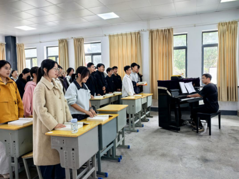 美术老师胡思依以“AI+历史美术”为主题,引导学生用AI设计历史事件相关作品,以“美育导师”身份循循善诱;音乐老师杜润则凭借扎实专业功底,以激情教学带动学生掌握发音技巧,让学生在互动中“爱上音乐”。艺体组党员教师以“艺术导师”角色,既落实“AI激发创意”的要求,更坚守“爱的生长”和“教育的温度”。