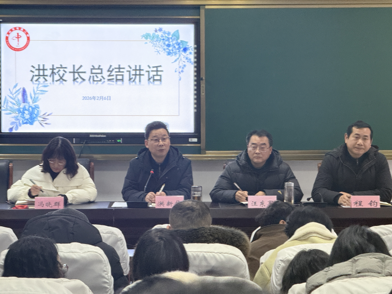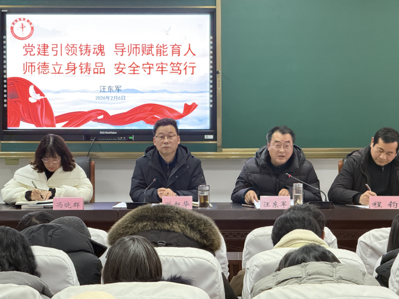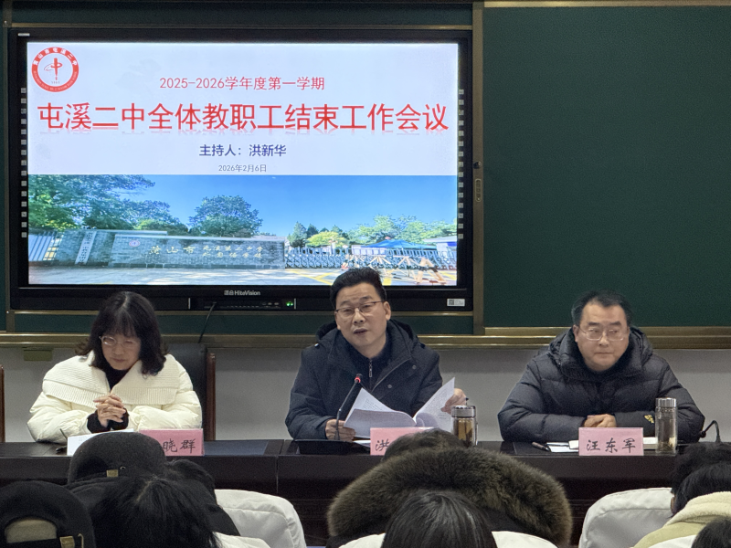 2月6日下午,屯溪二中2025-2026学年第一学期期末教职工大会在学校道德讲堂会议室召开。会议全面总结本学期各项工作成效,部署假期安排与下一阶段重点任务,统一思想,凝聚共识,擘画新篇。学校党支部书记、校长洪新华主持会议,全体教职工参加会议。