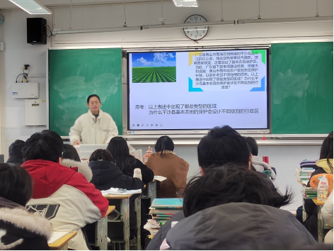 首先潘督学随机走进课堂,深入教学一线听课,听取青年教师石韦逸琼的地理课,重点关注教师课堂教学设计、师生互动、教学目标达成等落实情况。课后及时和石老师开展评课交流,肯定授课教师备课充分、教学环节扎实,同时从课堂师生互动、提升育人实效等方面提出指导意见,为学校深化课堂教学改革、提升教学质量精准赋能。