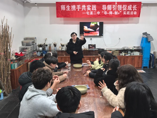 为深入推进学校“导-师-制+”育人工作,传承和弘扬中华优秀传统文化,丰富学生的课外实践与文化体验,近日,屯溪二中党支部联合团委开展党建带团建活动,组织学生前往屯溪老街杨文笔庄,开展“师生携手共实践,导师引领促成长”主题非遗文化实践活动。同学们在社会导师杨达的带领下,走进毛笔的千年历史,亲身体验传统毛笔制作技艺,在匠心手作中感受中华传统文化的独特魅力。