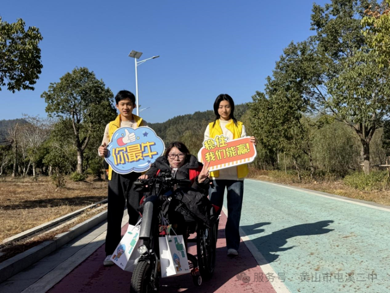 初冬的黄山,生态步道上暖意流动。近日,“爱我中华•第19届轮椅黄山行暨2025绿水青山轮椅跑”公益活动在黄山举行。屯溪二中推行“导-师-制+社会志愿服务”模式,组织师生志愿小队全程参与,在服务中传递温暖,在互助协作中实现共同成长。
