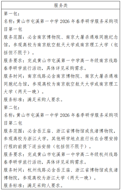 二、项目名称:黄山市屯溪第一中学2026年春季研学服务采购项目