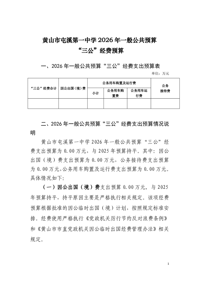黄山市屯溪第一中学2026年一般公共预算“三公”经费预算