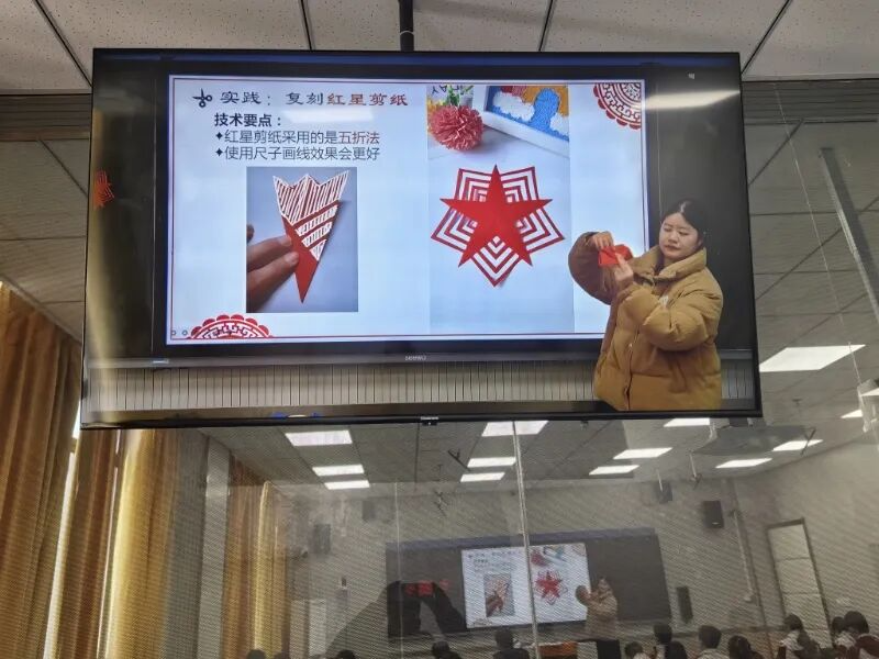 体艺及技术学科以实践为纽带,让爱国情怀在体育、美育与非遗传承中落地。体育组吴鹏飞老师在《行进间投篮》公开课中,融入“精准协作、奋勇争先”的体育精神,以“为国争光”为激励,让学生在训练中感悟拼搏担当。技术组程旻老师的《一纸同心——剪纸中的结构之美》课堂,传授剪纸技艺的同时,深挖非遗文化里的同心团圆寓意,引导学生以双手创造美、以同心筑家国。