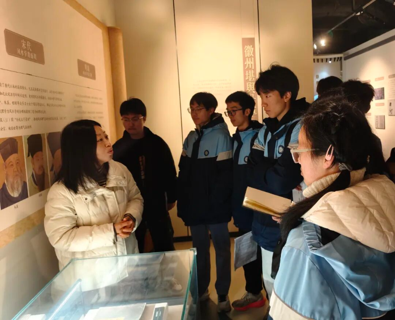 在万安罗经文化博物馆,吴鲁衡罗经老店的讲解人员结合徽州地理概况,系统地介绍了罗盘从起源、发展直至蜚声中外的辉煌历史。同学们认真探究罗盘构造,在观察选料、车盘、分格、写盘等制作工序时,积极探讨制作所需木材、矿石等原料的来源地,并进一步思索自然地理环境对罗经制作技艺传承的影响。通过此次研学,学生对罗盘这一融合天文学、地理学、建筑学等多学科知识的精密工具有了更直观的认识,对“人与自然和谐共生”的地理核心内涵也有了更为深刻的领悟。