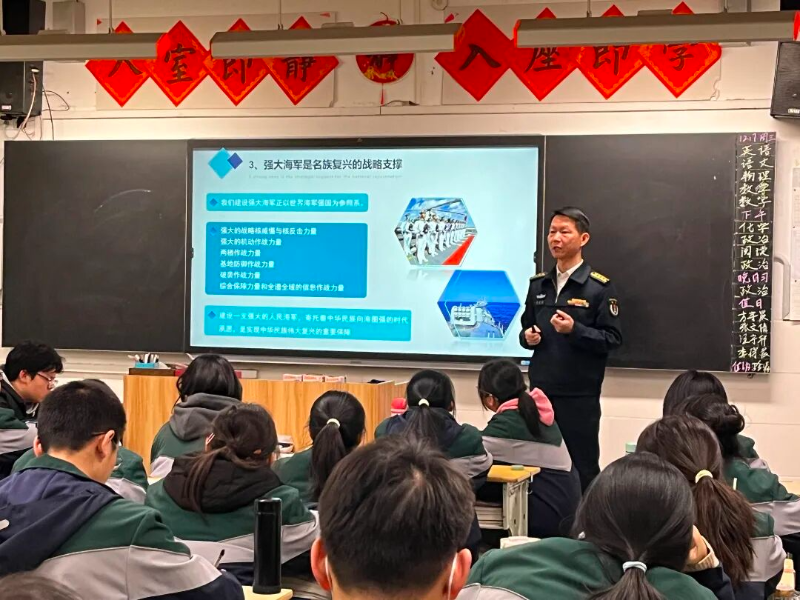 海军工程大学的报告创新采用“课堂讲授+模拟实训+生涯规划”的模式,李教授不仅详细介绍院校特色,更建立了长期的指导联系机制。高三(3)班汪嘉铠同学说:“在海军工程大学的宣讲中,李教授详细介绍了海工大的历史沿革、发展现状,并着重为同学们答疑解惑。同学们对海工大的了解进一步深入,对其产生了强烈的兴趣和报考意愿。”