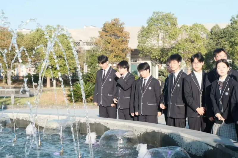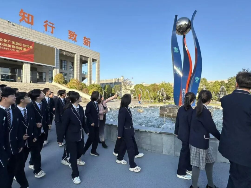 活动伊始,副校长俞晓燕为启动仪式致辞。她向同学们详细阐释了校园文化广场喷泉的设计理念,各种细节融入了学校对同学们向阳生长、蓬勃向上的期许。在俞晓燕的带领下,大家绕喷泉一周,仔细观察了喷泉的各处细节,不时交流,对其中的文化内涵有了更深的领悟。