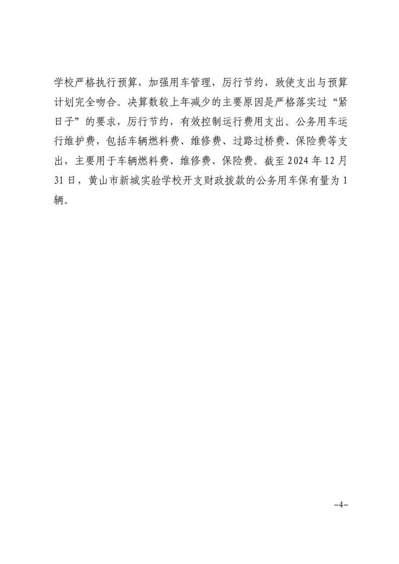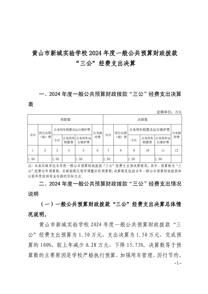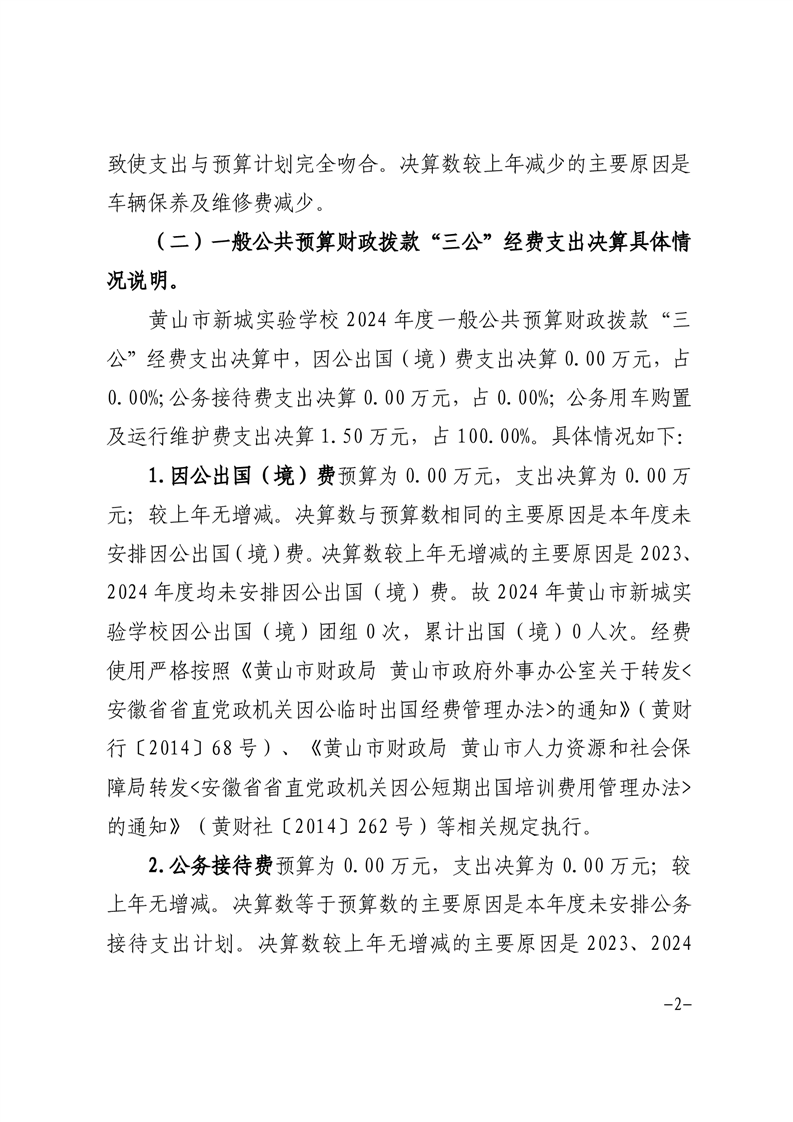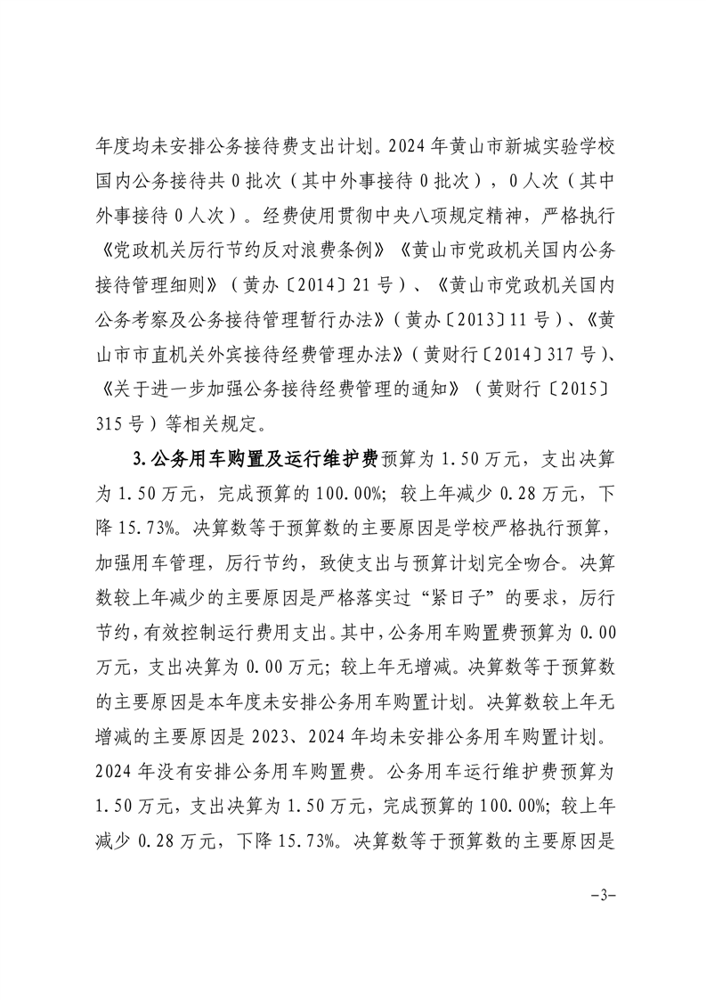 黄山市新城实验学校2024年度一般公共预算财政拨款“三公”经费支出决算