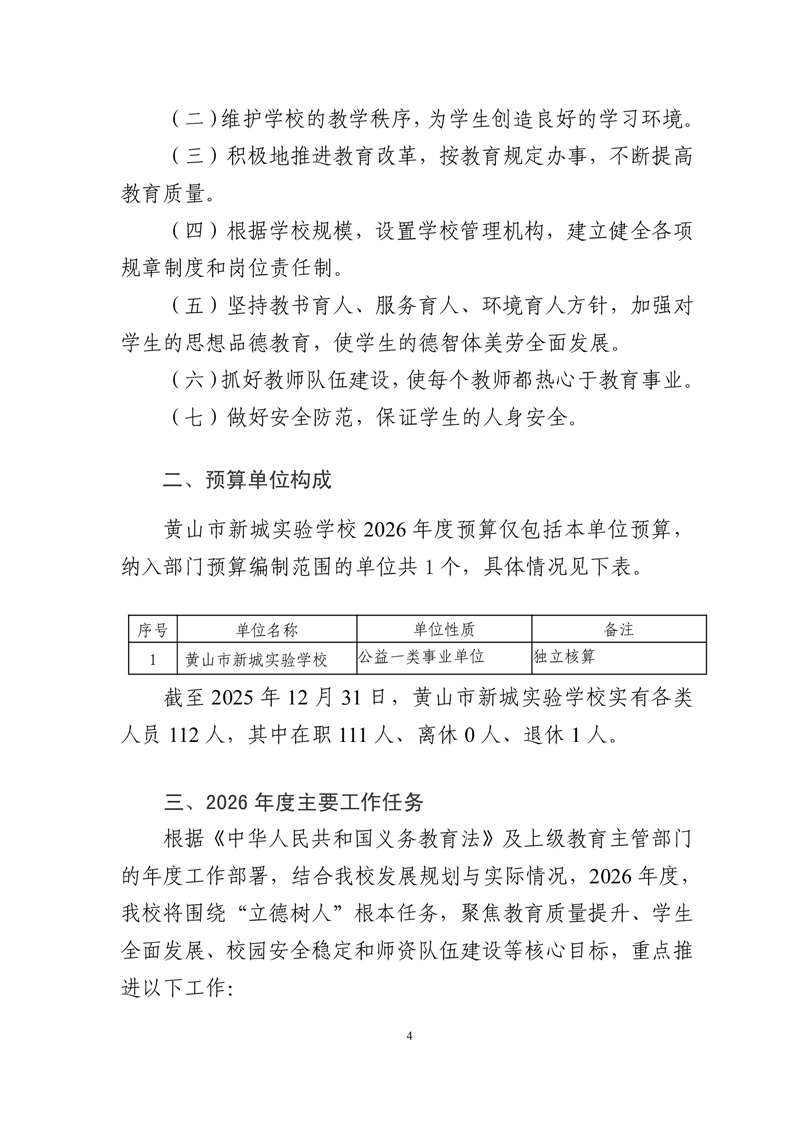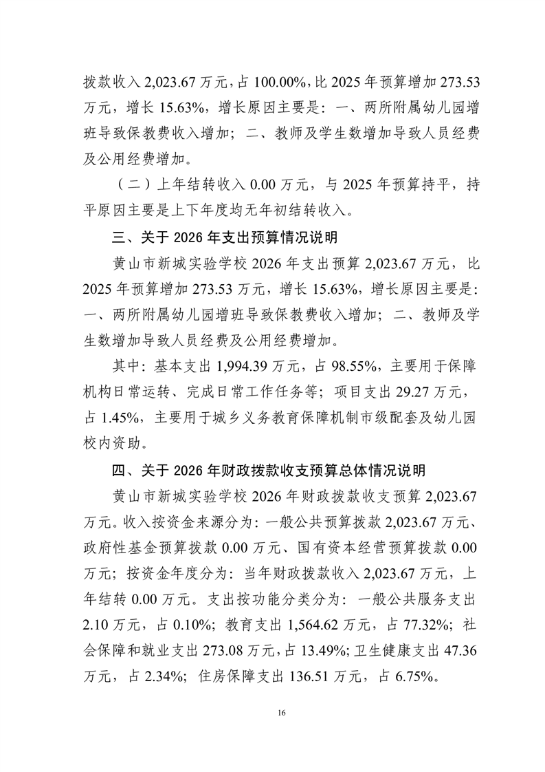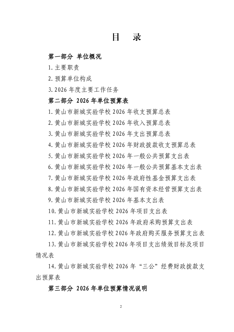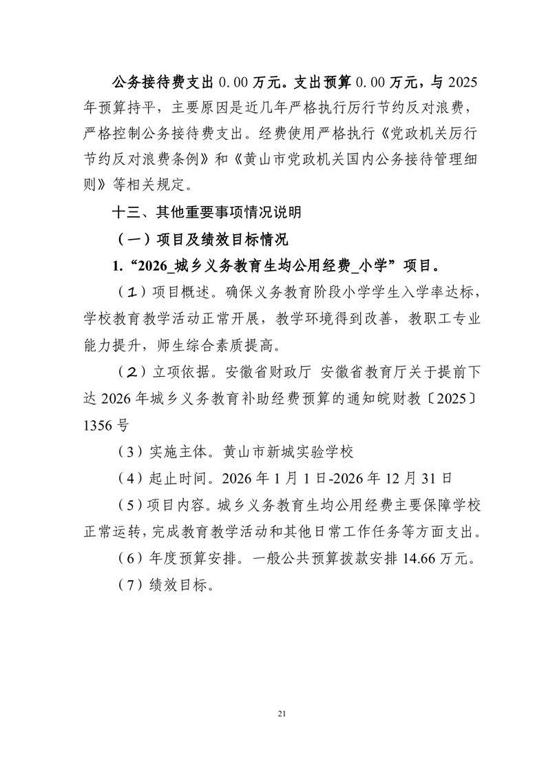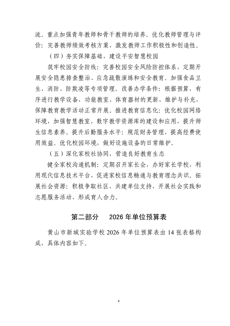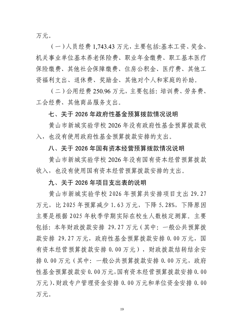 黄山市新城实验学校2026年单位预算
