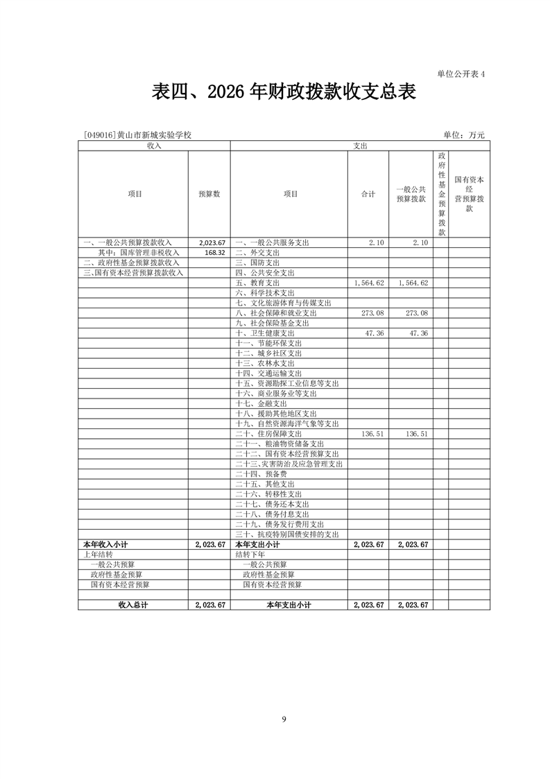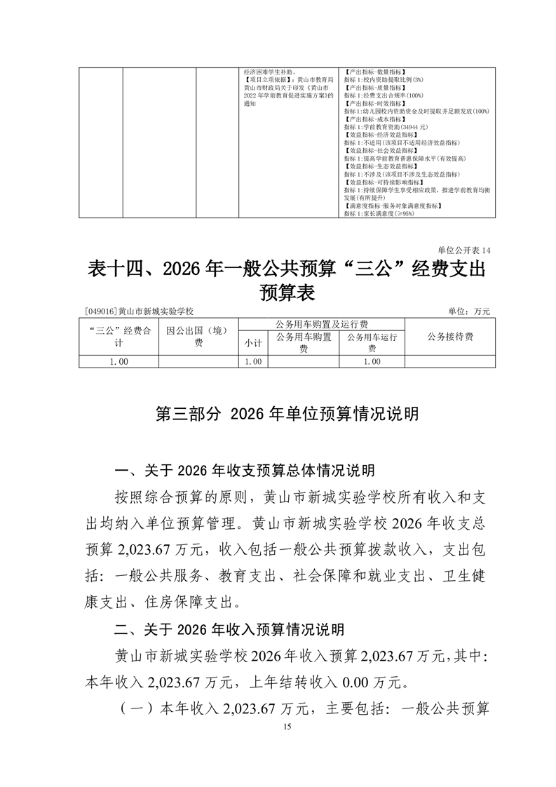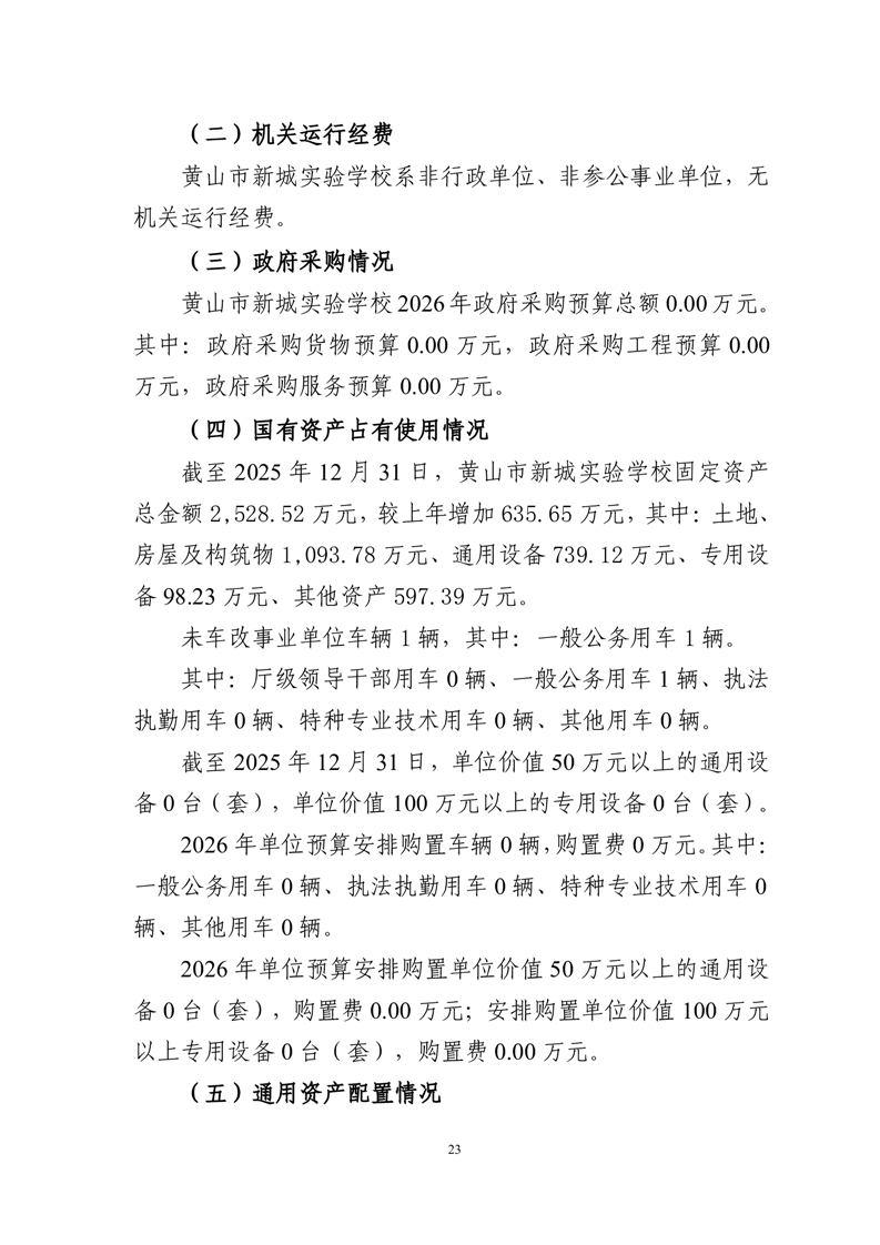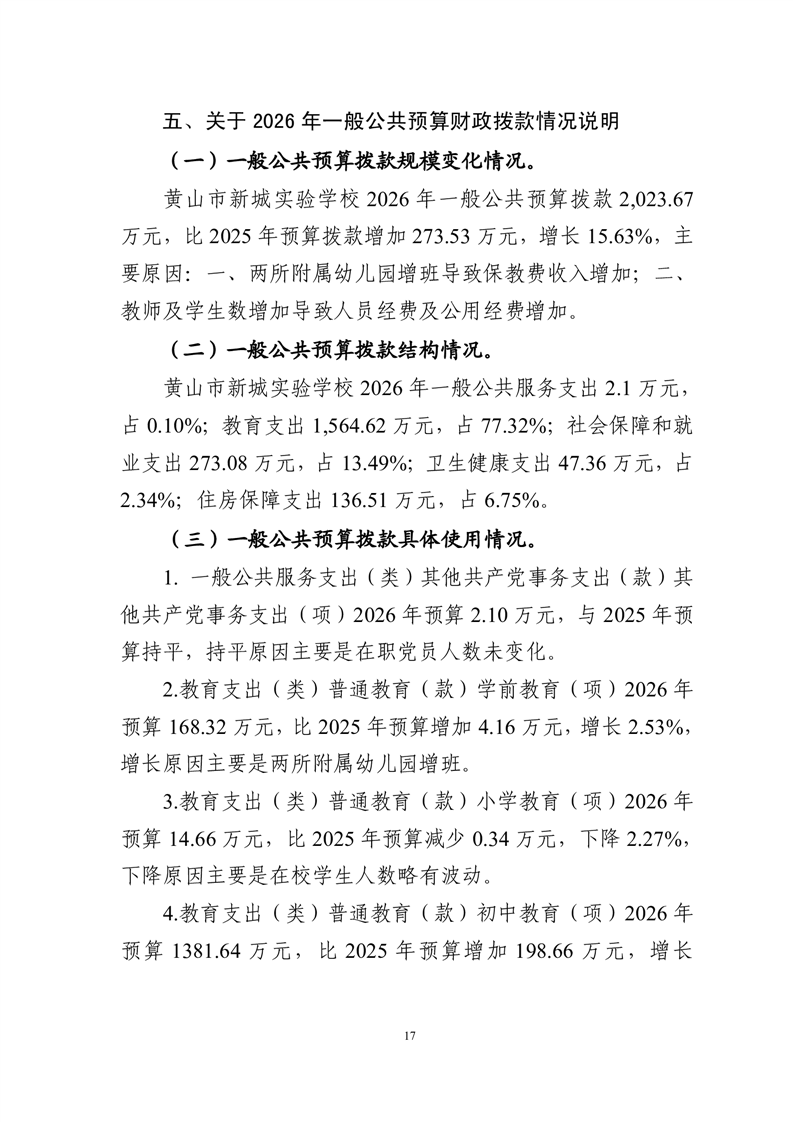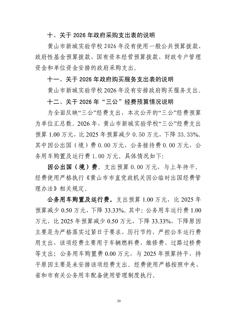 黄山市新城实验学校2026年单位预算
