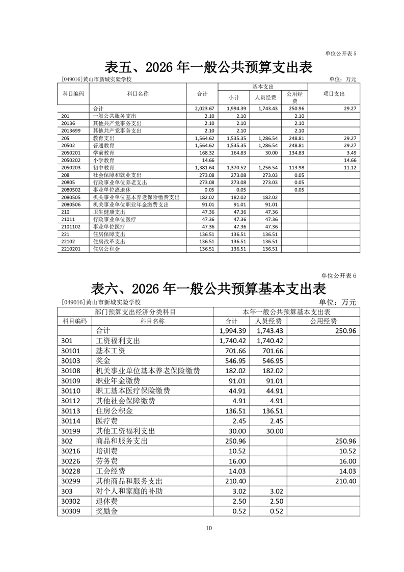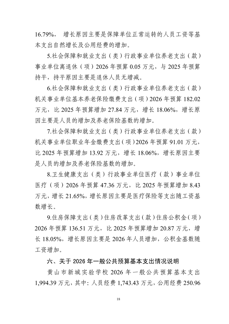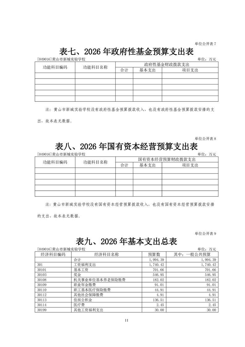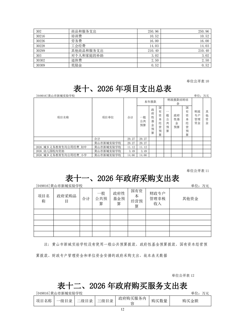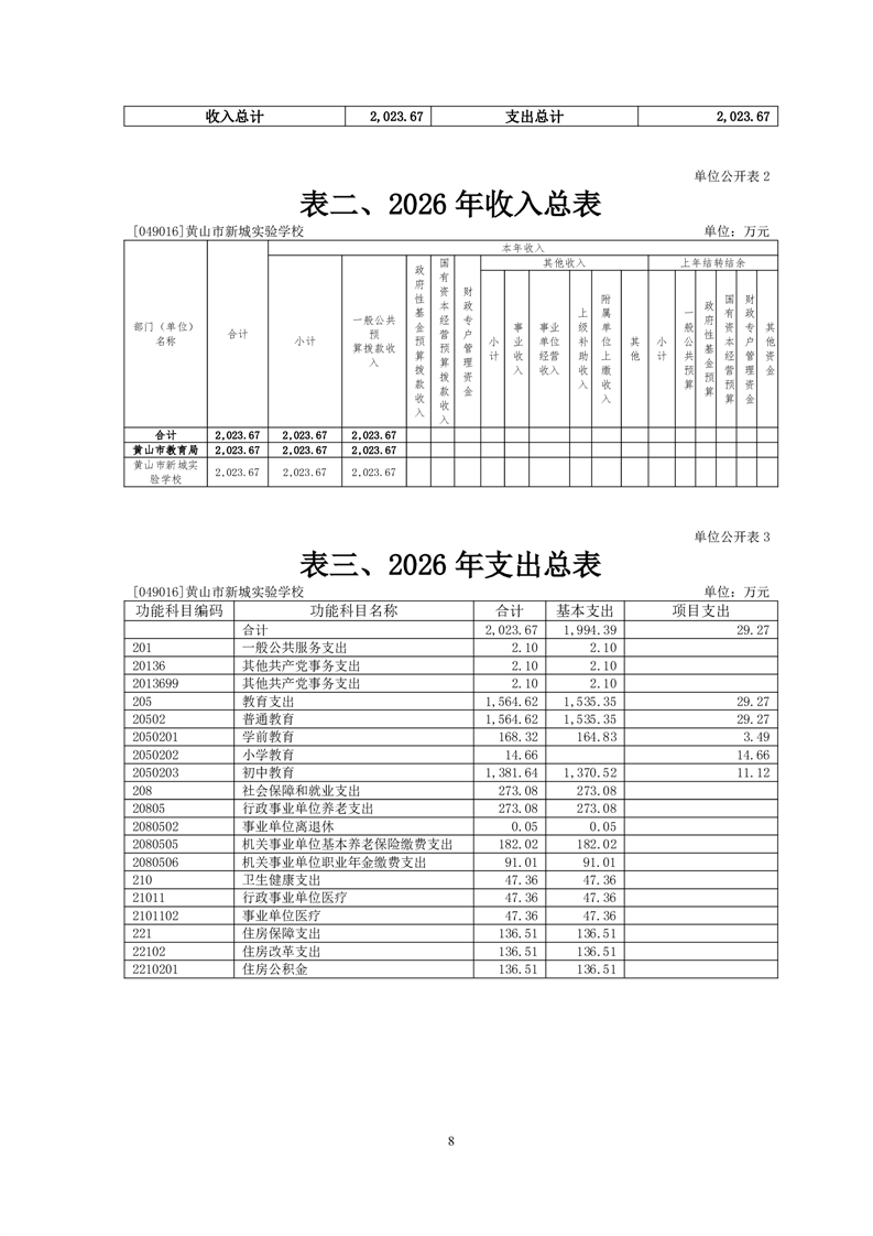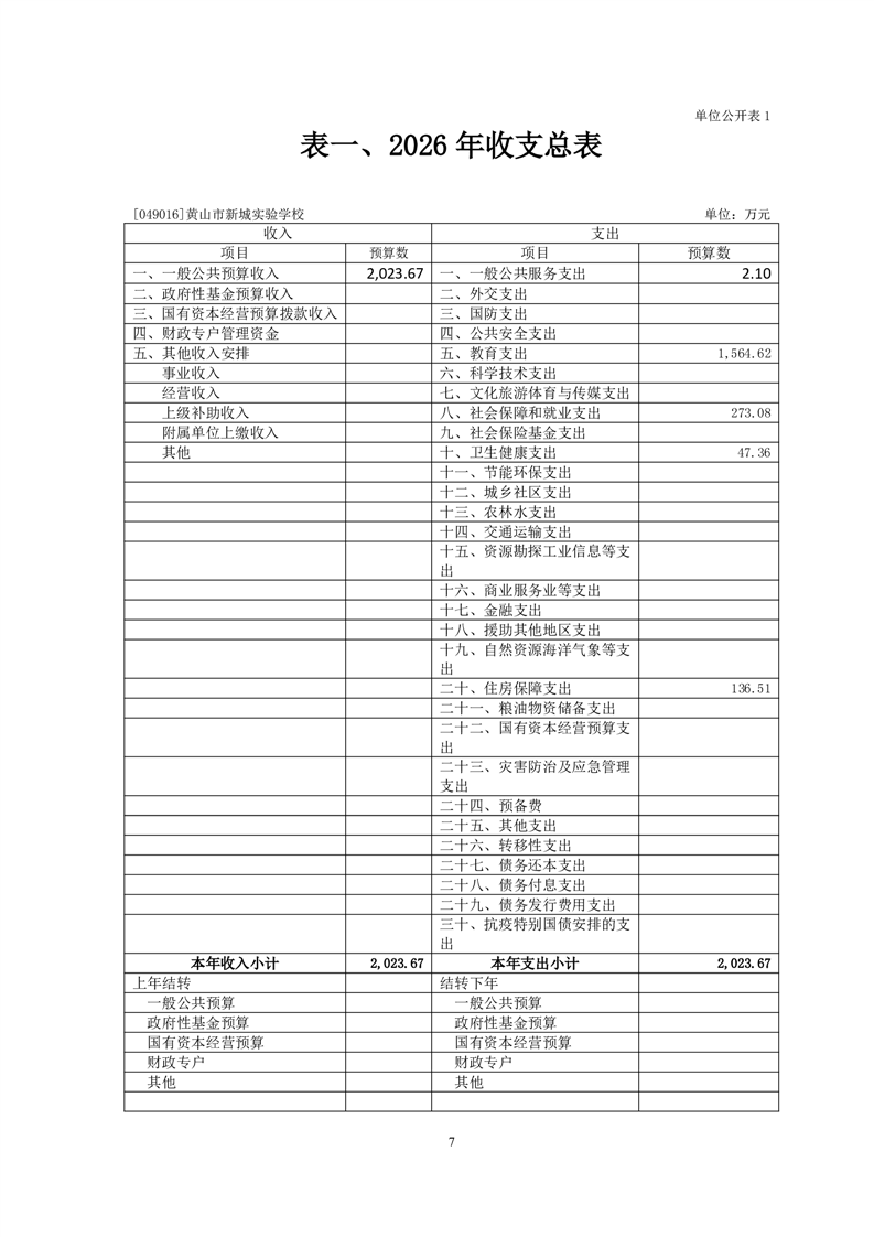 黄山市新城实验学校2026年单位预算