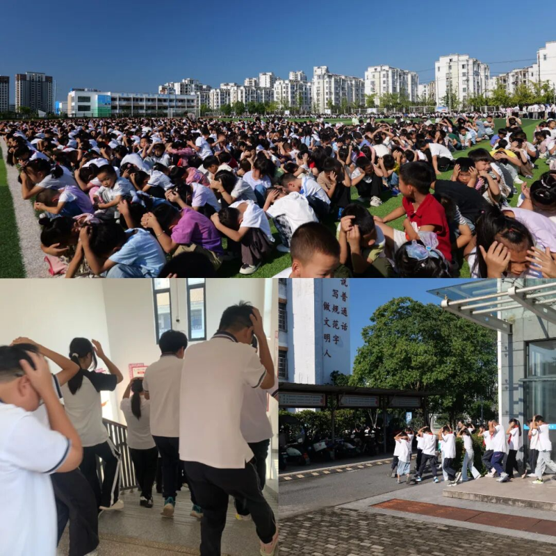 随着广播中紧急疏散警报的响起,全体师生双手护头、有序地从安全疏散路线向操场安全地带撤离。在疏散过程中,老师们指导学生保持冷静,不要惊慌失措,注意避免踩踏和碰撞。