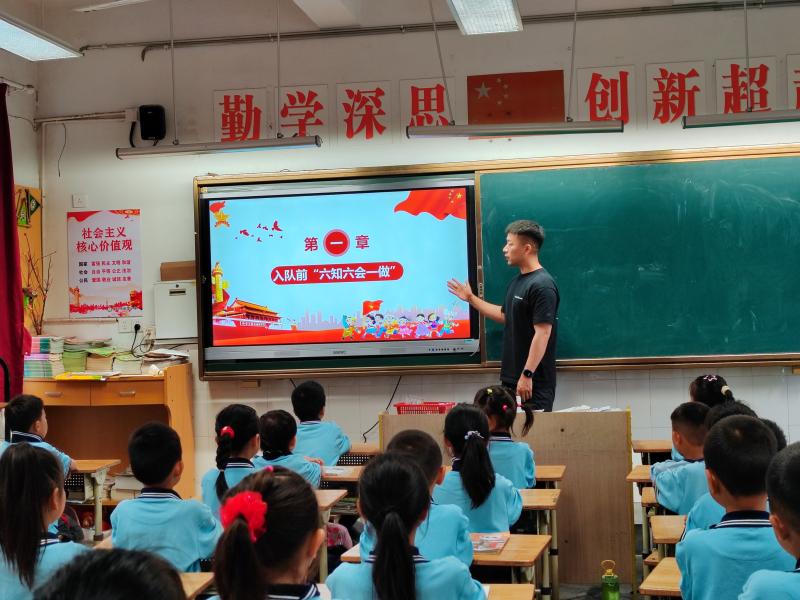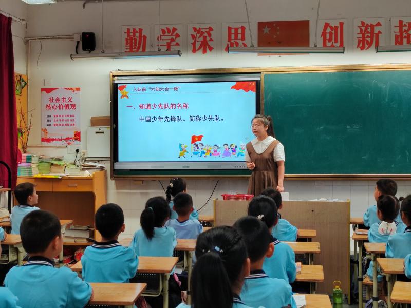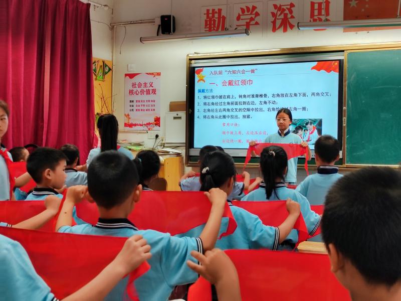 为深入贯彻落实习近平总书记关于少年儿童和少先队工作的重要论述,帮助一年级少年儿童更好地掌握少先队知识,明确加入少先队组织的意义,切实增强少先队员的光荣感和责任感,5月16日上午,黄山市新潭小学部分大队委和红领巾小骨干走进一年级课堂,开展队前教育教学和考核活动。