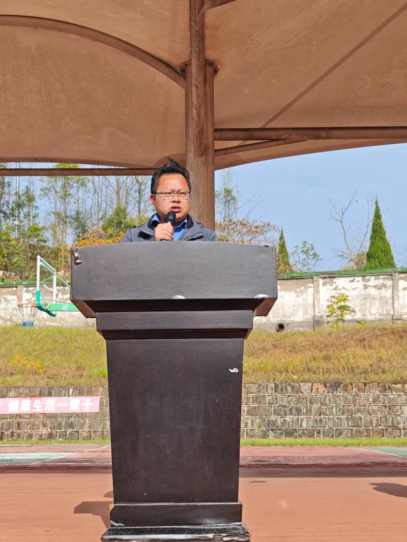 专职党支部副书记身着正装,面带微笑向全体师生致意。他首先肯定了学校体育工作的成果,随后寄语全体师生,温暖的话语里,满是对师生的关怀与期许。