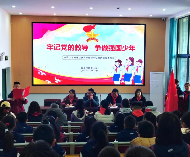 在国旗下成长,在队旗下立志。为进一步加强学校少先队基层组织建设,增强少先队员的光荣感和使命感。11月27日,中国少年先锋队黄山市新潭小学成功召开第六次代表大会。党支部专职副书记李均、少工委副主任吴瑶宜、副校长汤少将、大队辅导员程云、德育处主任杨涛以及各中队少先队员代表、辅导员代表等出席了此次大会。