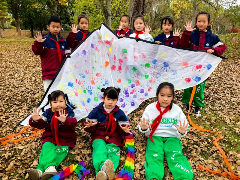 二年级的队员们在老师的组织下,于梅林湿地公园的草坪上展开了一场别开生面的“秋日绘鸢·童心飞扬”集体画风筝活动。队员们以天空为幕布,以风筝为画纸,用稚嫩而鲜艳的笔触,在风筝上尽情描绘金黄的树叶、南飞的大雁、摇曳的芦花以及他们眼中最美的秋天。师生共同执笔,笑语欢声间,一只只独一无二的风筝逐渐鲜活起来。这样的活动不仅让队员们在动手创作中感受了秋日的诗意与欢乐,更在他们心中播下了热爱自然、勇于创造的美好种子。