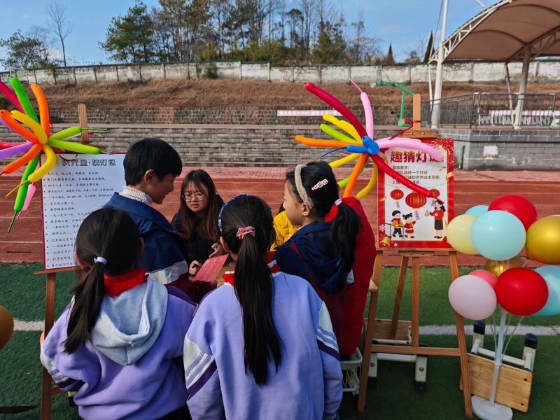 活动现场,同学们热情高涨、秩序井然。“趣猜灯谜”区域,大家对着谜题凝神思索,不时低声讨论;“投壶纳福”摊位前,孩子们模仿古人姿态屏息投箭,感受传统礼仪之趣;“夹乒乓球”、“平衡乒乓”项目中,同学们手眼协调、稳扎稳打,围观学生的加油声此起彼伏;“萝卜蹲”、“母鸡下蛋”等游戏则引爆全场欢笑,孩子们在奔跑跳跃中释放活力。最令人期待的环节莫过于“印章兑换”——每集满两个章,即可在“魔力套圈圈”专区获得一次套取精美礼品的机会。这份通过自身努力赢得的奖励,让孩子们的脸上洋溢着加倍的自豪与喜悦。