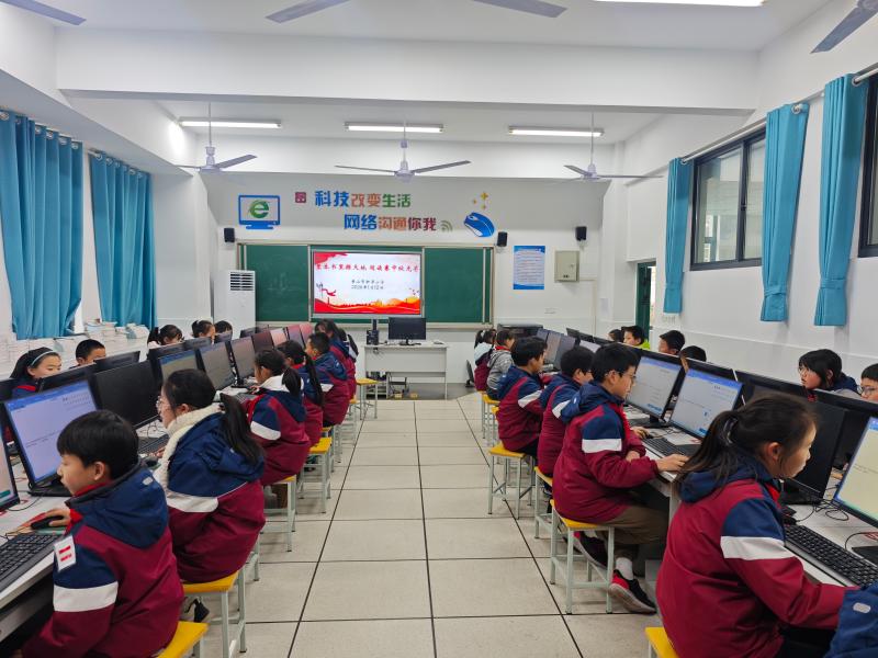 结合不同学段学生的年龄特点与阅读能力差异,本次选拔赛采用分段施策的方式开展,兼顾科学性、全员参与性与针对性。其中,一、二年级聚焦基础阅读素养培育,通过精心设计的纸质阅读检测卷,重点考查学生对书籍核心内容的理解程度与基础记忆能力,夯实阅读根基;三至六年级则依托信息化线上阅读平台开展检测,题目设计更侧重对整本书脉络梳理、核心观点提炼以及知识迁移思考等高阶能力的考查,引导学生从“泛读”向“精读”“深读”转变。