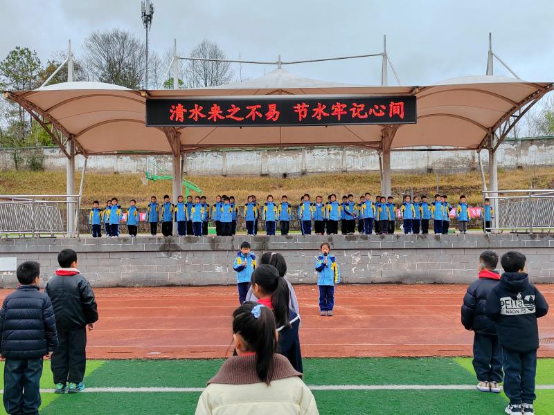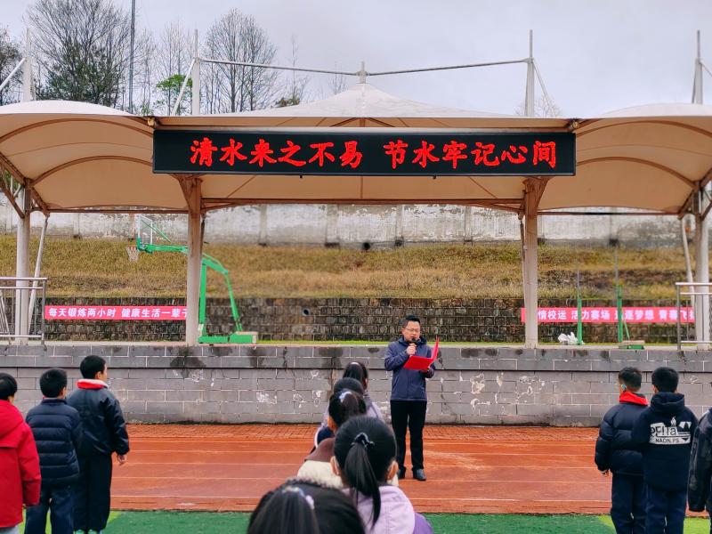晨会开始,101班级代表登台进行节水主题演讲,用稚嫩的童声,真挚的情感,唤醒了在场师生的节水意识,呼吁大家从身边小事做起,守护每一滴水。