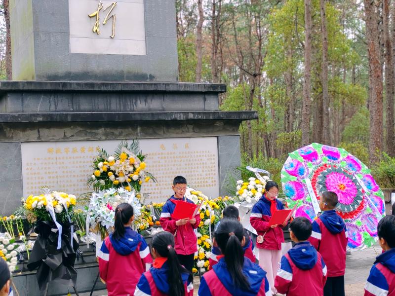 在烈士纪念碑前,祭扫仪式正式开始。少先队员代表发出号召,少年智则国智,少年强则国强。以先烈为榜样,继往开来,用自己的热情、自己的血汗、自己的才智,把握住生命的每一个瞬间;用自己的坚韧,不懈奋斗,立志成材,超越自我,报效中华!