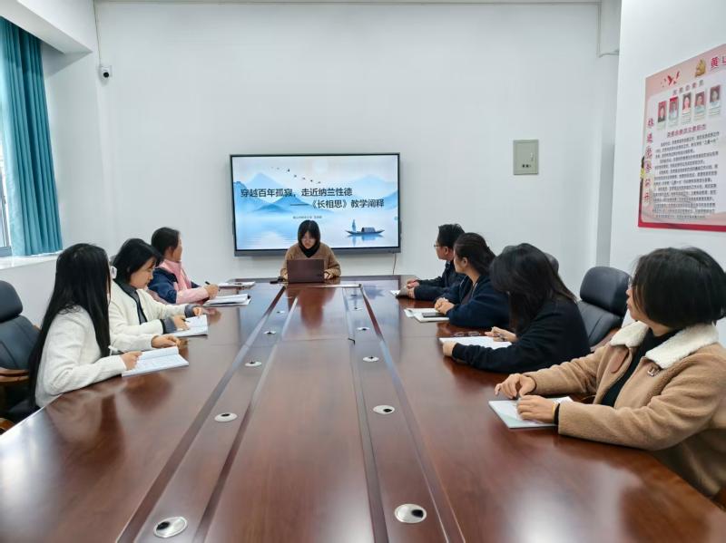 听课结束后,马慧敏老师围绕本课的教学设计进行了说课。她从教材分析、教学目标、重难点把握以及教学过程安排等方面展开了详细阐述,重点说明如何通过信息化手段辅助传统古诗词教学,强化学生的情感体验与审美感知。